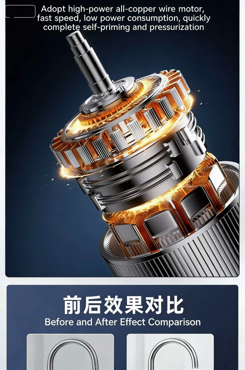 내장형 지능형 제어 시스템은 자동 시작 및 중지를 지원합니다. 6단 무단 변속 조절로 물 수요에 따라 자동으로 회전 속도를 조절해 안정적인 수압을 유지합니다. 실제 사용 요구 사항에 맞게 간단하고 유연하게 조정할 수 있습니다.