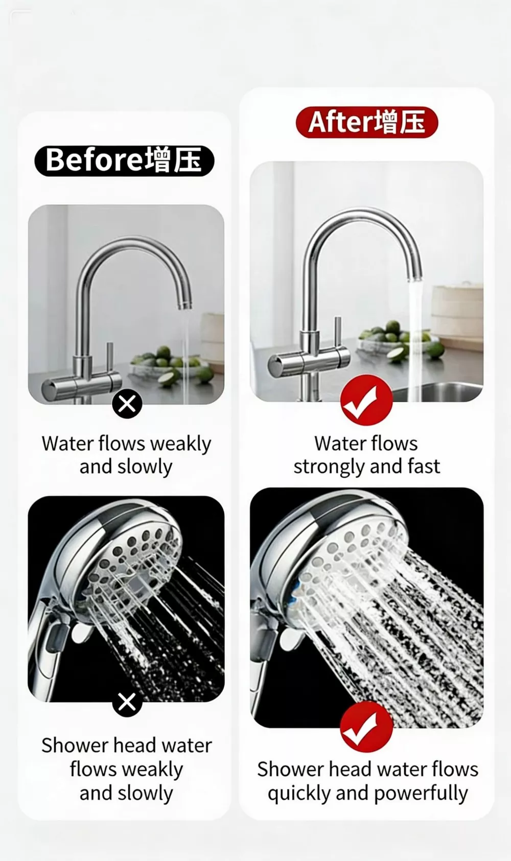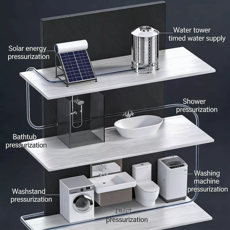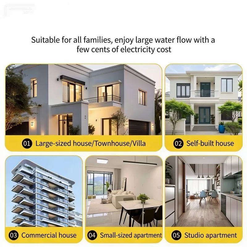 대형 아파트: 고층의 낮은 수압을 해결하고 샤워실과 주방에 안정적인 물 공급을 보장합니다.