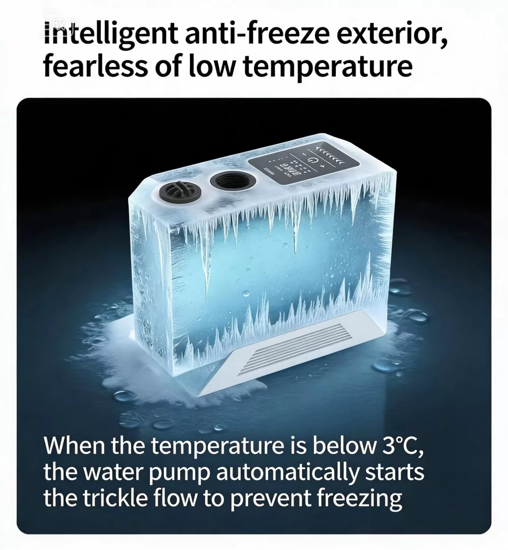 내장된 지능형 부동 난방 시스템은 주변 온도가 -3°C 이하로 떨어지면 자동으로 활성화되어 추운 날씨에 펌프 균열을 방지하고 장비 수명을 연장시켜 추운 지역에 이상적입니다.