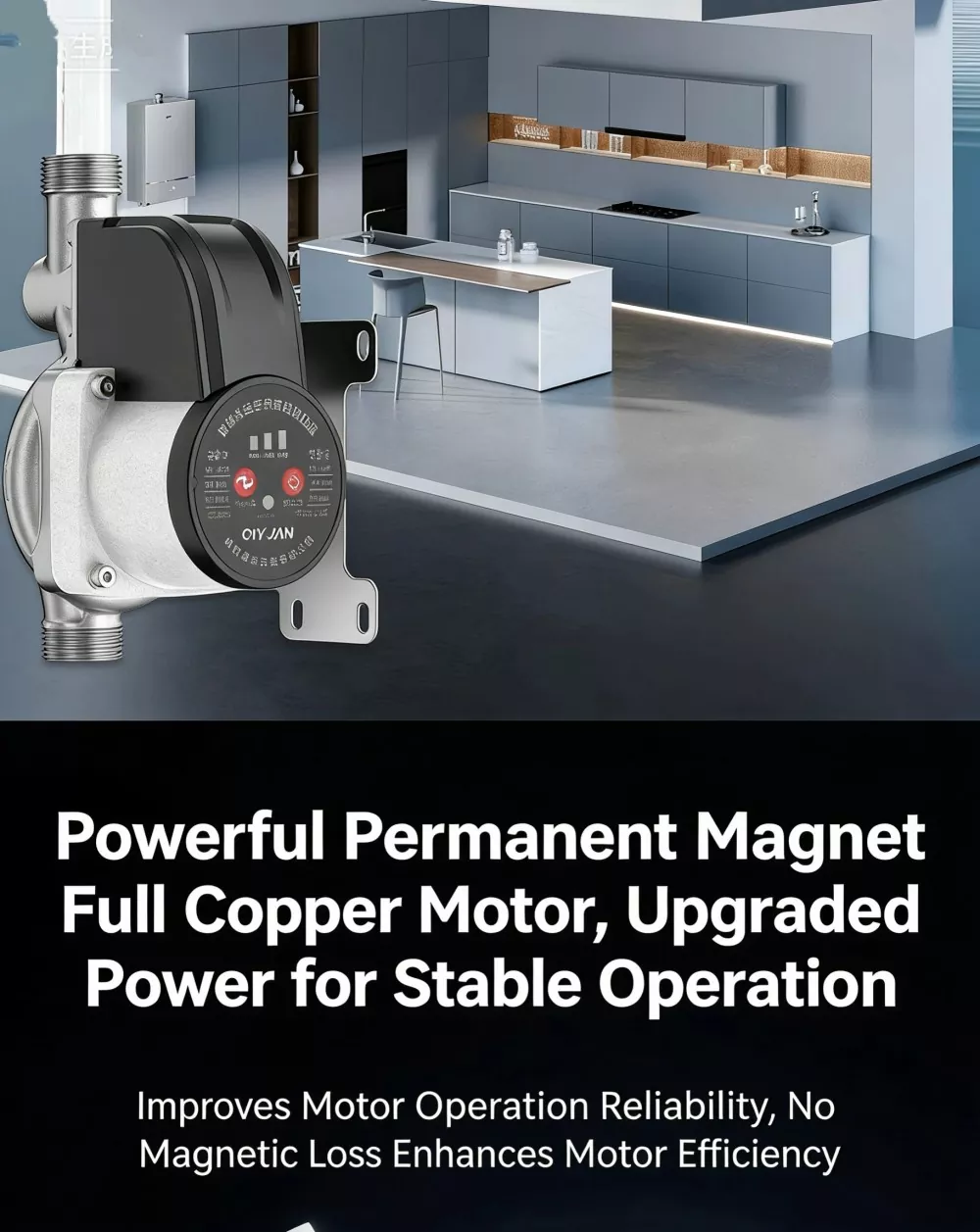 브러시리스 영구자석 모터와 정밀베어링을 장착하여 펌프의 소음이 매우 적어 실내에 설치하여도 일상생활에 지장을 주지 않습니다. 모터는 우수한 열 방출과 긴 서비스 수명을 위해 전체 구리 권선을 갖추고 있습니다.