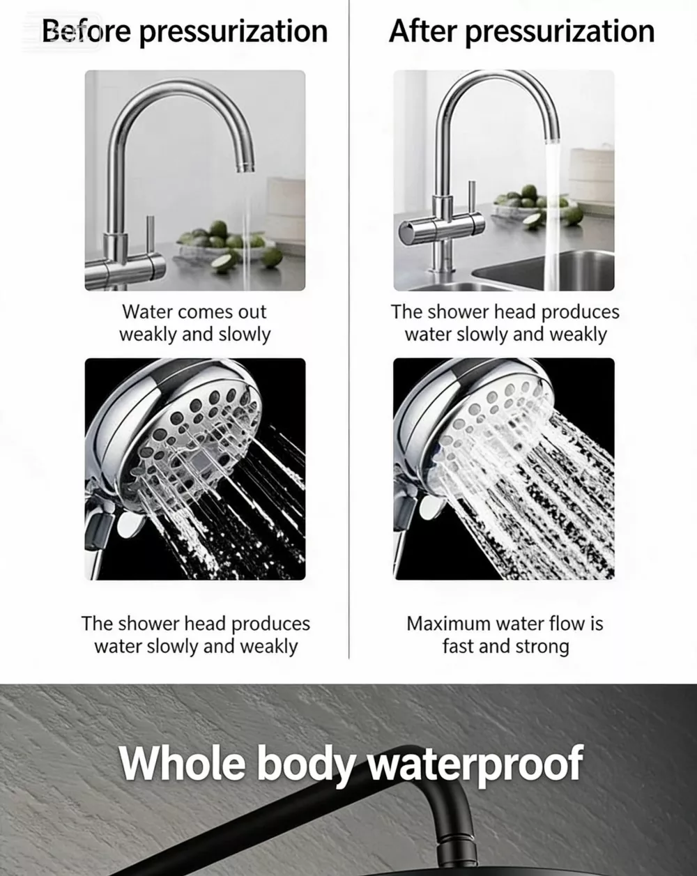샤워 헤드 압력 강화: 샤워 경험을 업그레이드하고 약한 물 흐름과 갑작스러운 냉수 및 온수 온도 변화를 종식시킵니다.